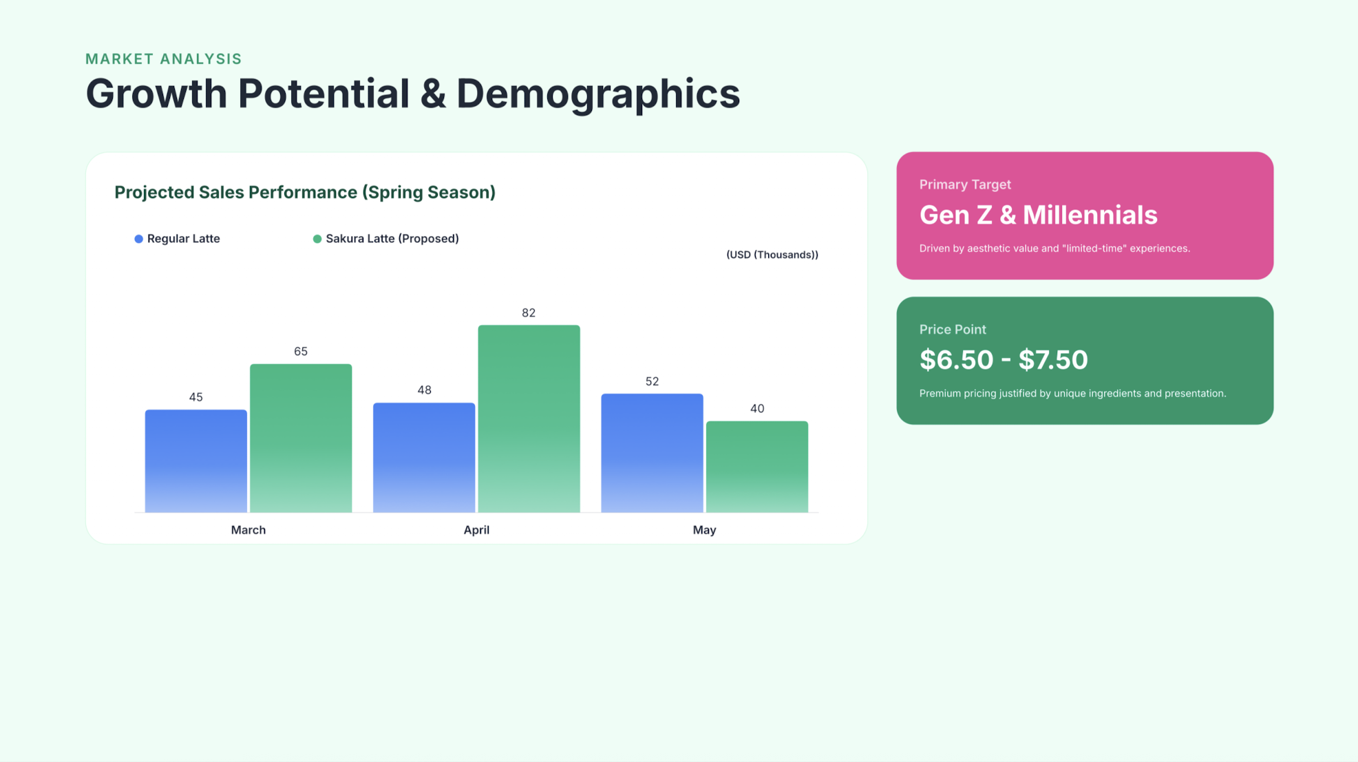 Ob Sie ein neues Café-Menü pitchen oder einen Quartalsbericht präsentieren, SlideAI übernimmt die Schwerarbeit. Beschreiben Sie einfach Ihre Vision, und sehen Sie zu, wie hochwertige Folien in Sekunden erscheinen.
