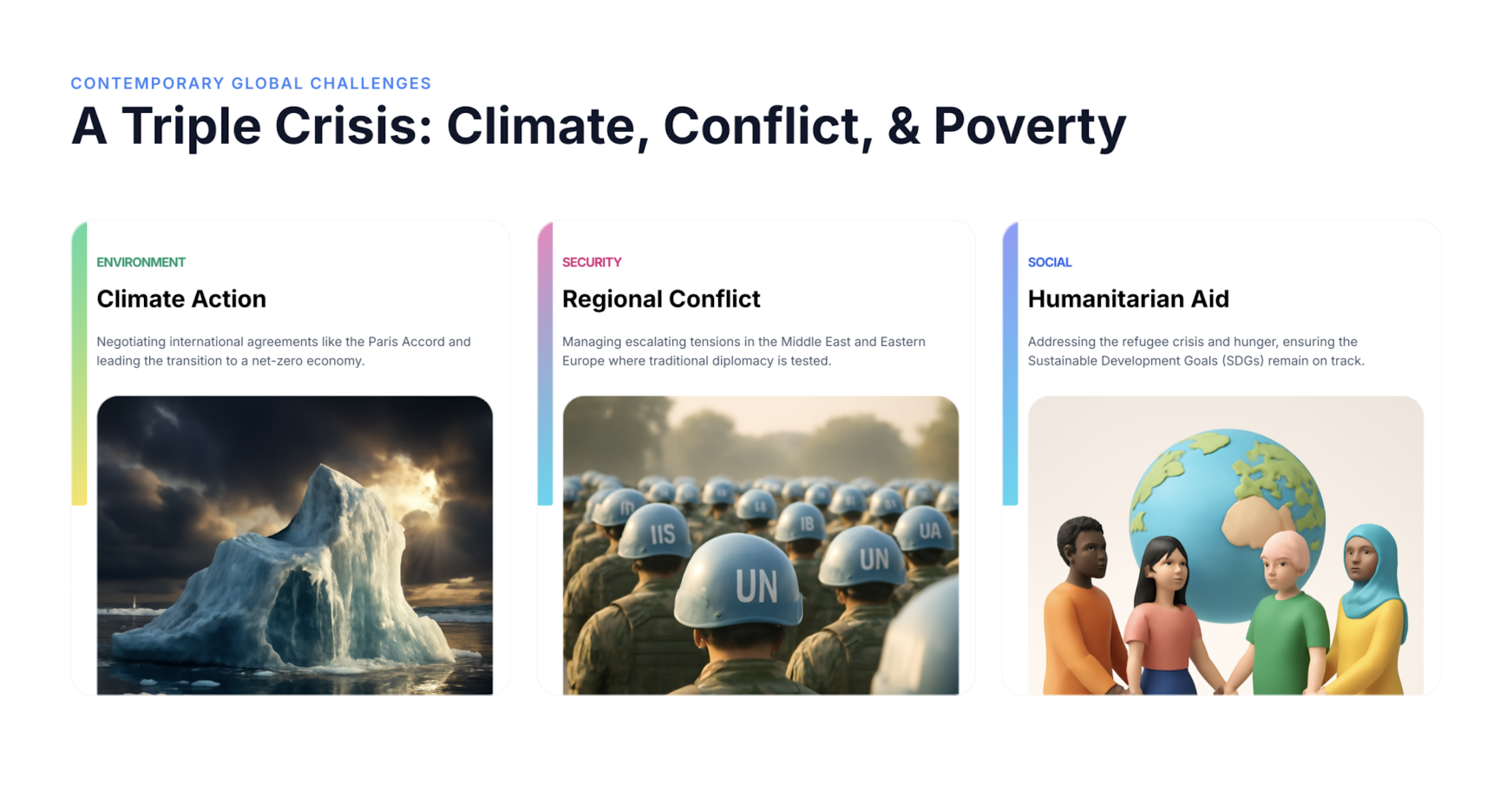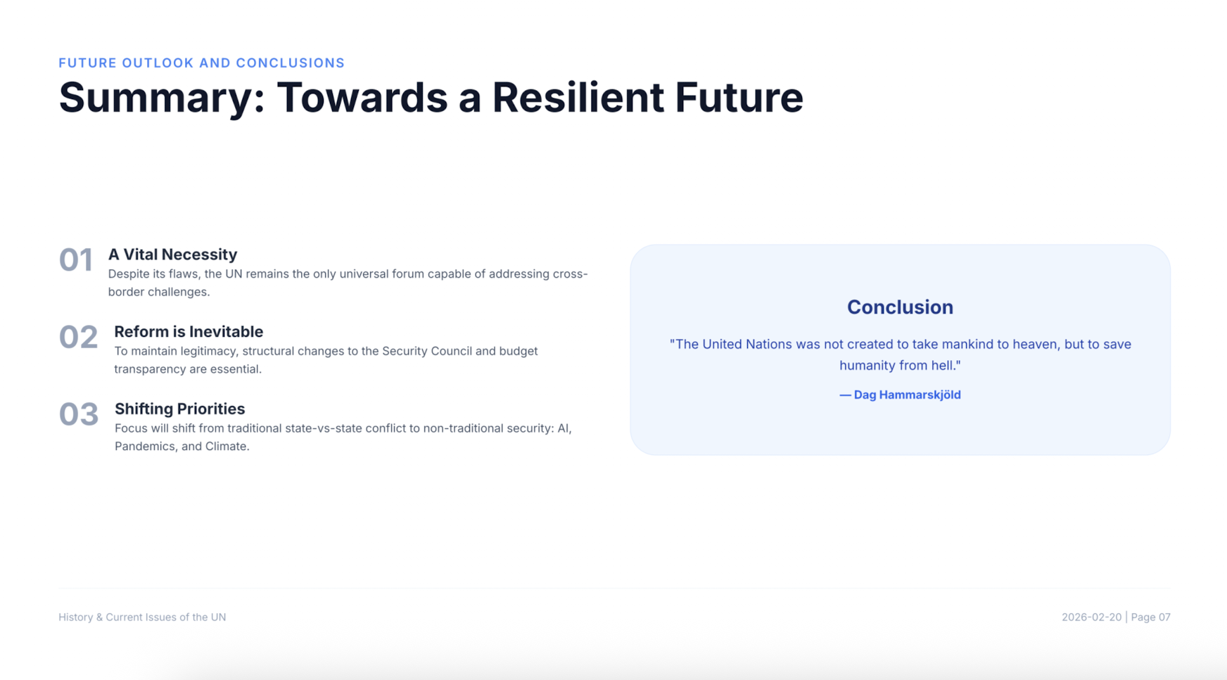 Let’s say you have a seminar presentation on the United Nations. You know the facts, but you don't want to spend all night making it look 'academic.' You just type one sentence, and the AI does the rest.